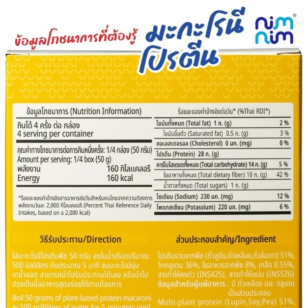 Macaroni, mixed plant protein (white and yellow box), Nim Nim brand (200g)