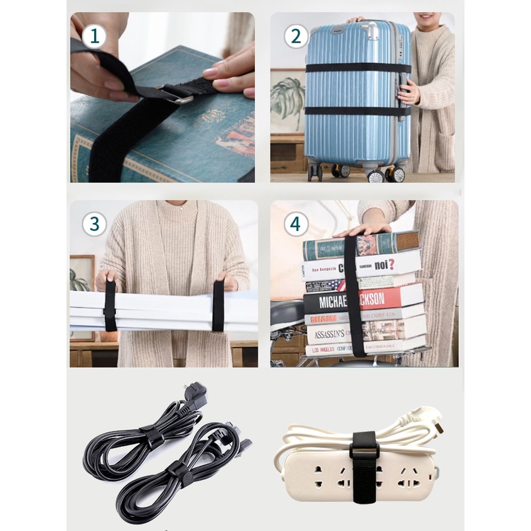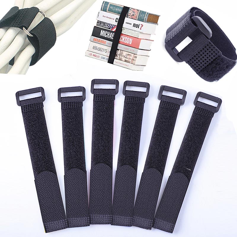 15/20/30/45/50/60/70/80cm Length 2cm Width Nylon Reverse Buckle Magic Hook Loop Fastener Tape Cable Ties Strap Sticky Line Finishing Straps Black