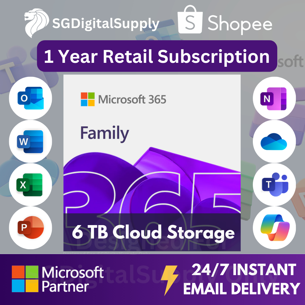 Microsoft 365 Family | 1 Year Retail Subscription | 6 Users | 6 TB OneDrive | Windows/Mac/iOS/Android | Digital Code