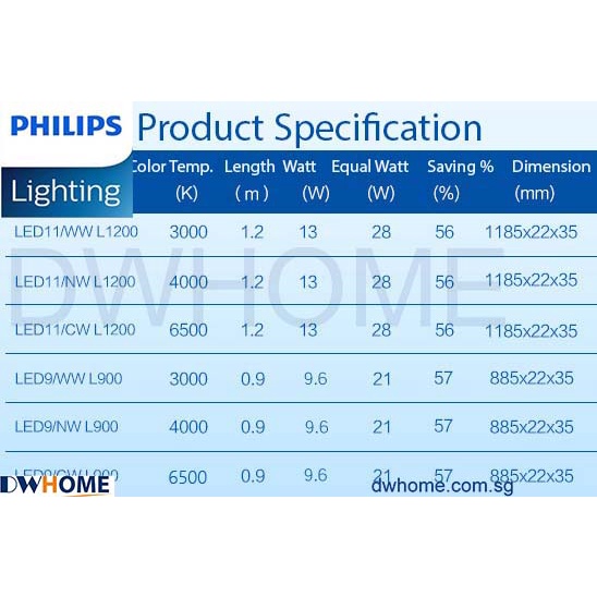 Philips Linea Wall T5 Light Tube Various Length 3FT/3.3FT/4FT-10W/11W/13W-750lm/850lm/1000lm