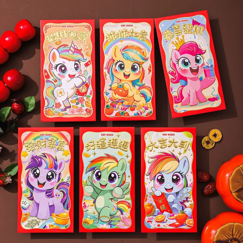 #CNY Cartoon Pony Anagbao 2026 Horse Year New Year Red Envelope#6Pcs马年新年红包财神爷利是封春节祝福红包封卡通创意过新年压岁利是封