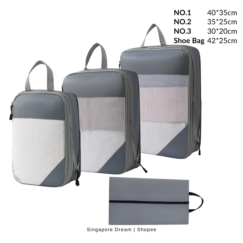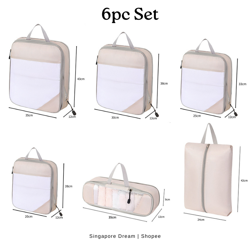 [SG Seller] 3 4 6pcs Travel Compression Packing Cubes Set – Luggage Organizer Bags for Clothes, Space Saving Storage