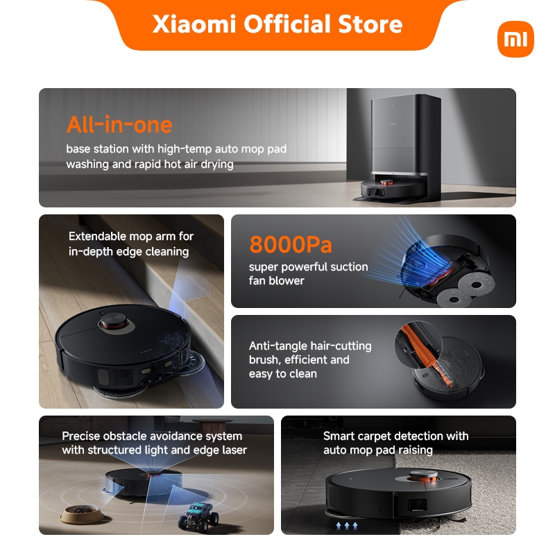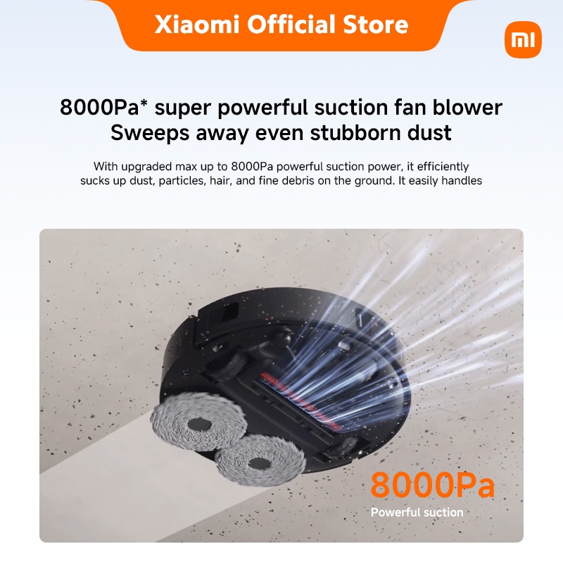 Xiaomi Robot Vacuum X20 Max | Extendable mop arm for in-depth edge cleaning, 8000Pa suction power