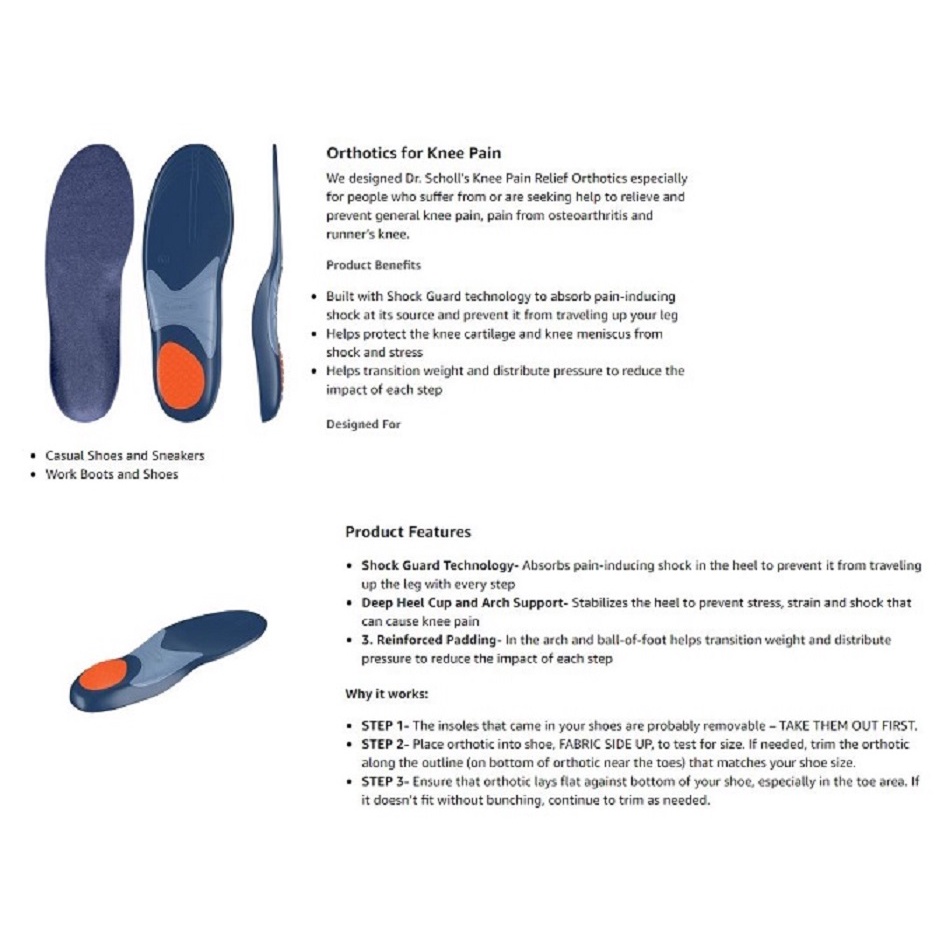 ☘️Dr. Scholl's KNEE Pain Orthotics Insoles for Men Size 8-14 / Women's Orthotics Insoles for Women Shoe Size 5.5-9