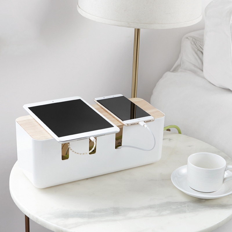 Minimalist Wooden Oak Cable Management Organizer Box Cover Socket Wire Organiser Storage