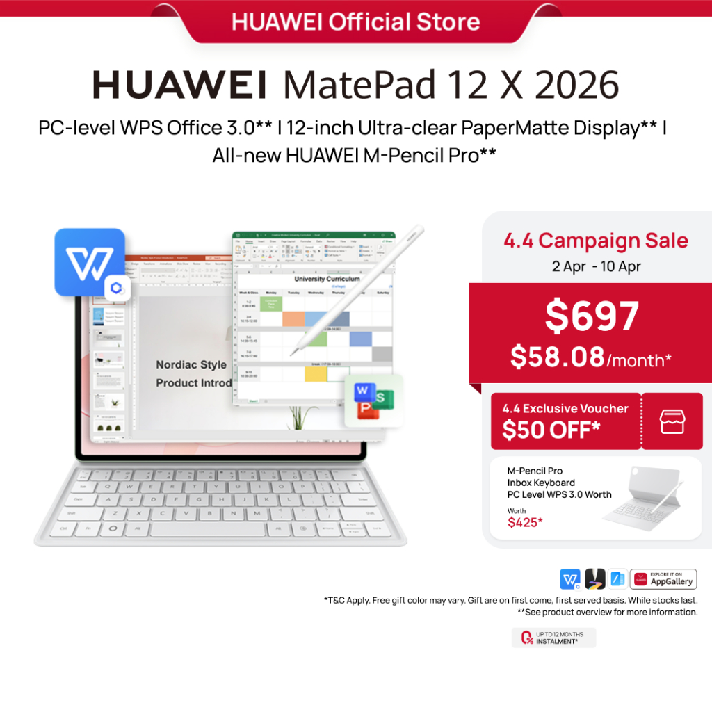 HUAWEI MatePad 12 X 2026 | PC-level WPS 3.0 | 12-inch Ultra-clear PaperMatte Display | All-new HUAWEI M-Pencil Pro
