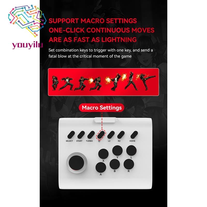 Wireless Joystick Controller Arcade Fighting Game Fight Stick Gaming Joystick Parts Accessories Fit for ///Switch/PC/Android White+Black youyilu