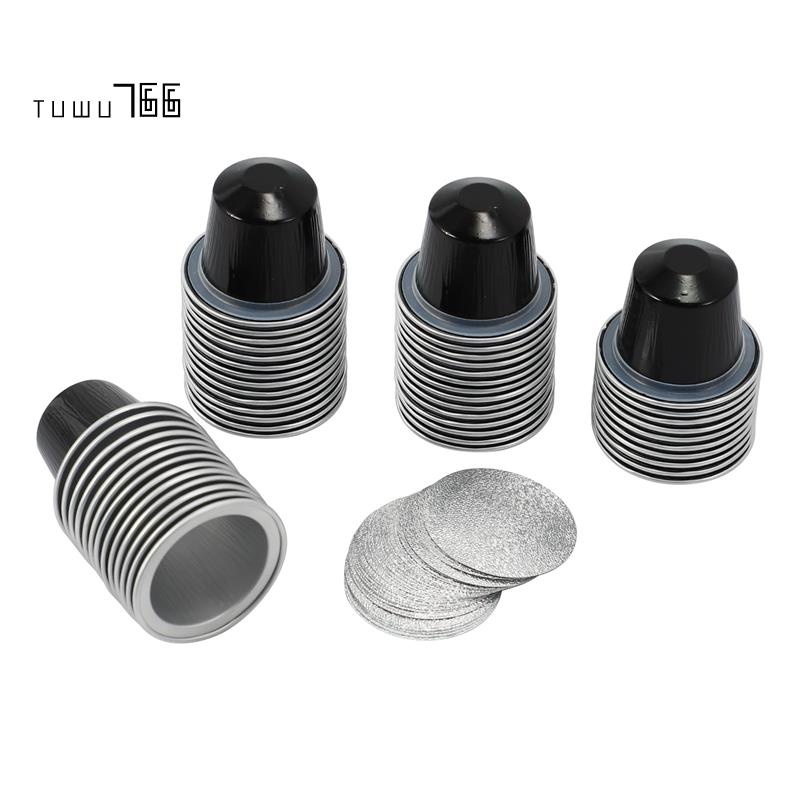 50Sets Refillable Coffee Capsules Cup Disposable Coffee Capsules Packaging Cafe Supplies for Nespresso Black