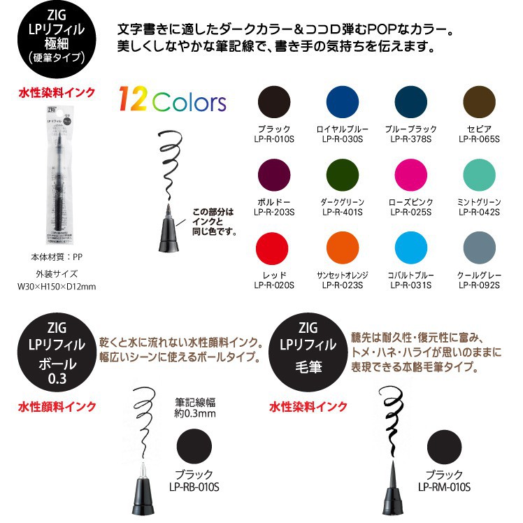 Japanese Kuretake ZIG Ten Thousand Years Brush COCOIRO Changeable Pen Refill LP-RM-010S Black Type