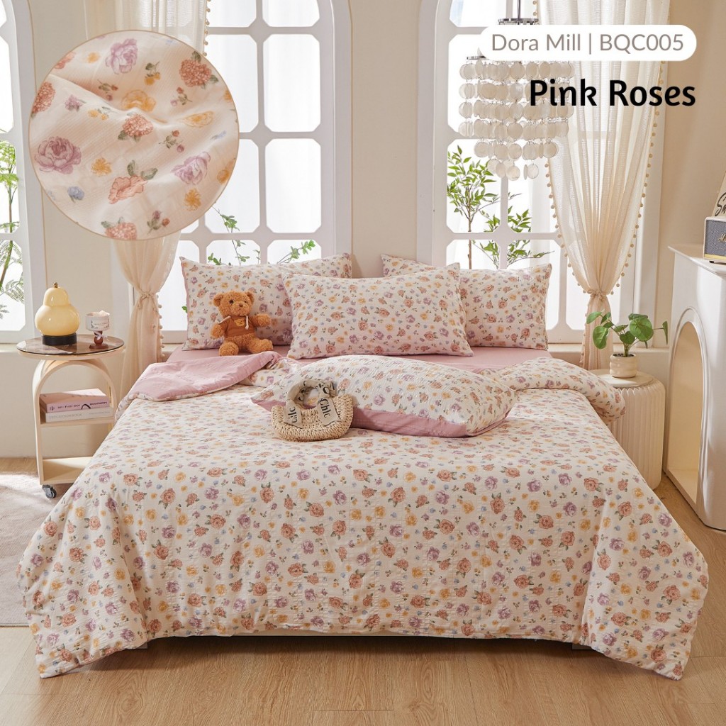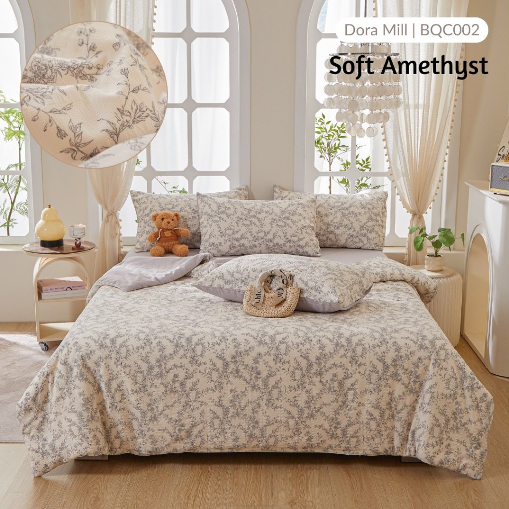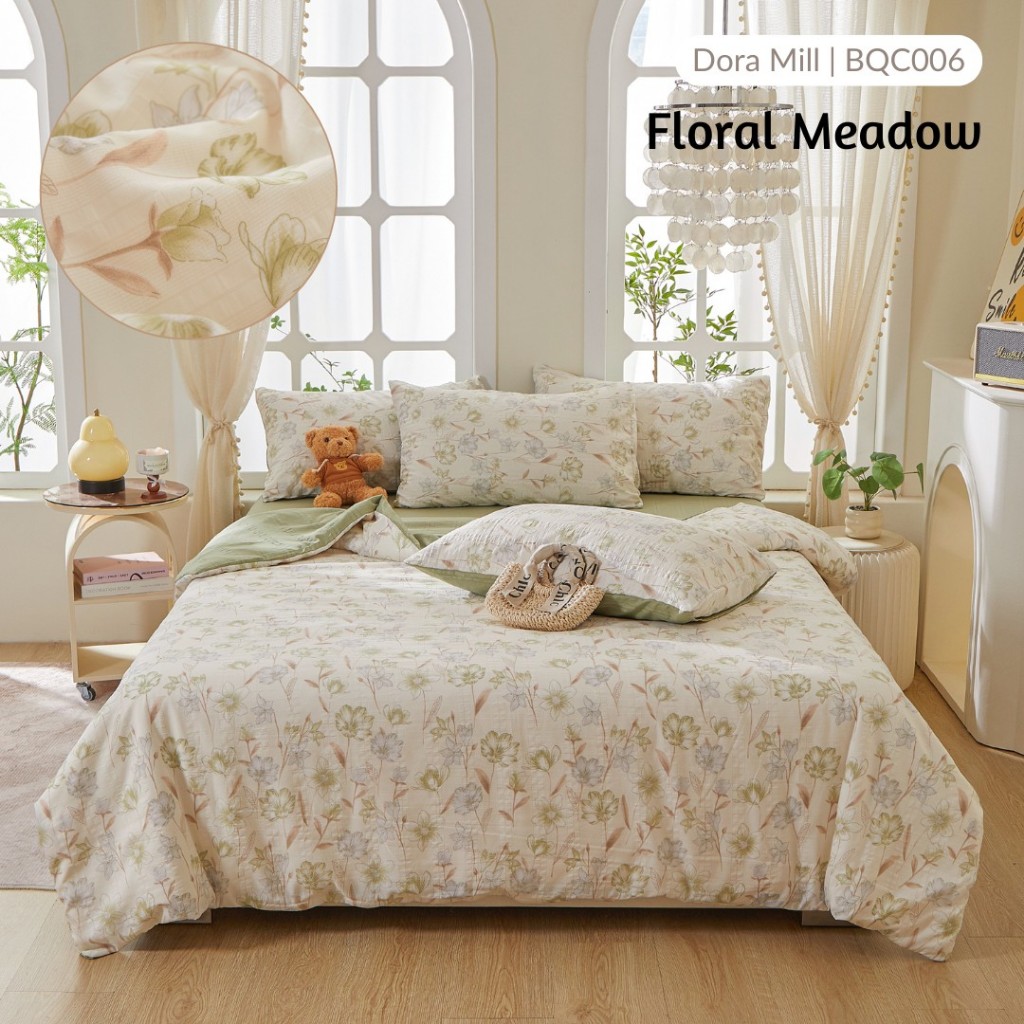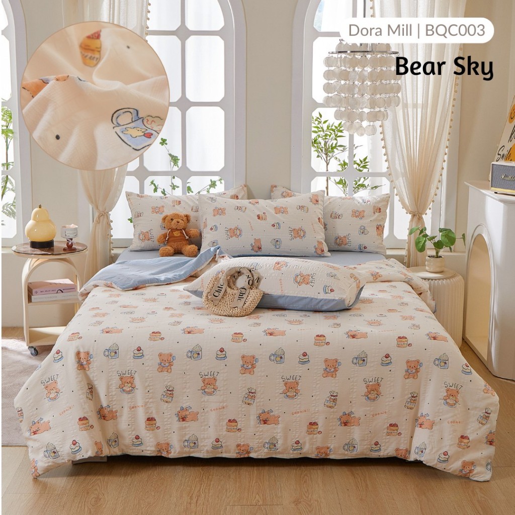 DORAMILL Cloud Cotton Quilt Cover Set Fitted Bedsheet Grade A Fabric 4in1 Queen King Cadar BQC