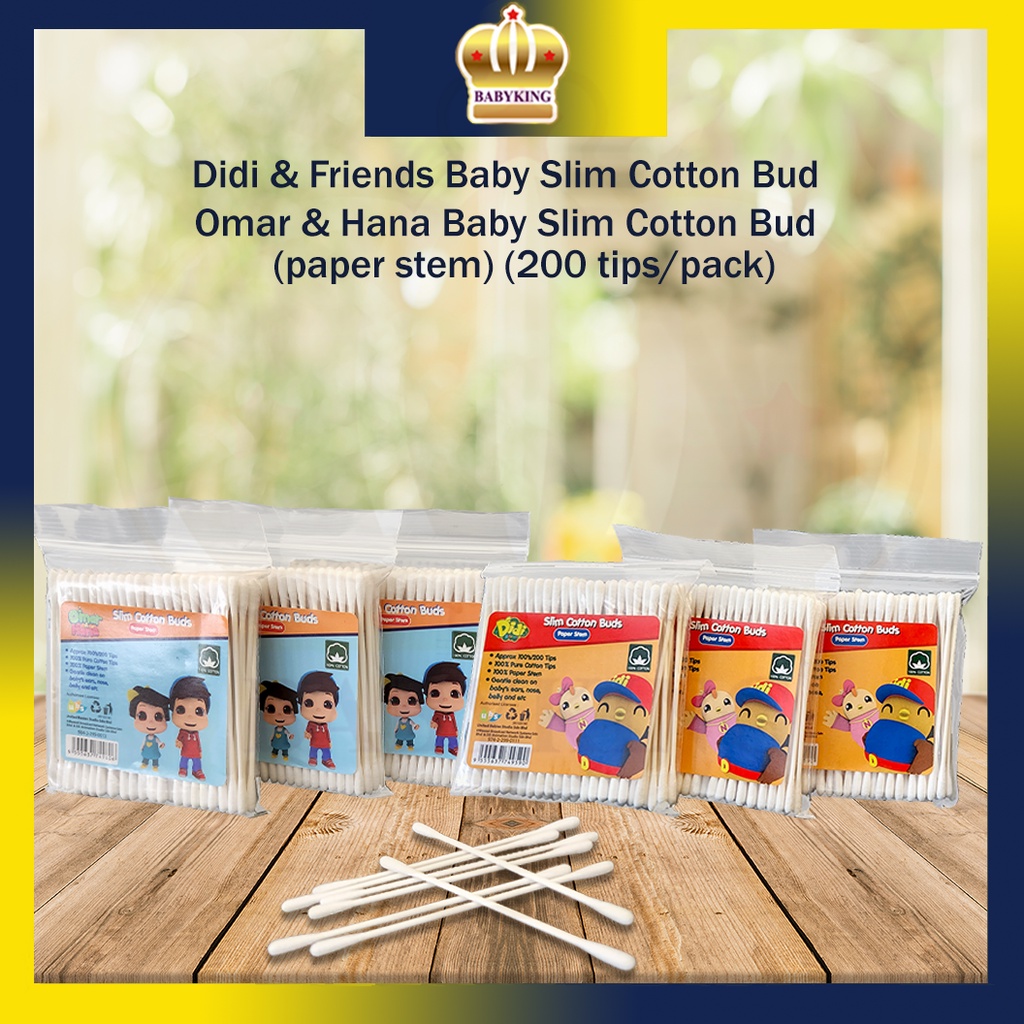 Didi & Friends Omar Hana Baby Slim Thin Mini Cotton Buds Bud Swab Swabs (200 Tips) Fiffy Beeson Pureen Anakku Baby Cotton Bud
