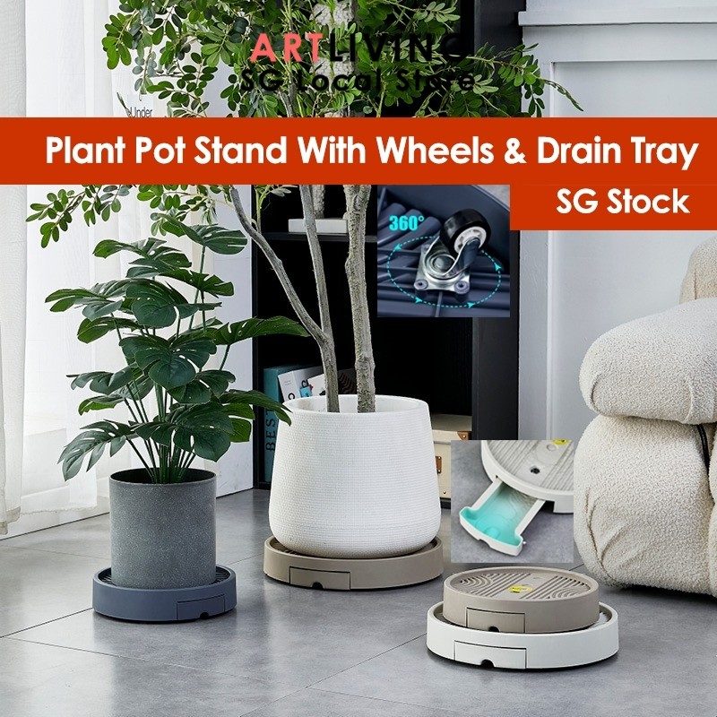 ArtLiving SG Plant Caddy with Wheels and Drainage Tray, Rolling Plant Stand,Flower Pot Tray With 360 Caster Wheels