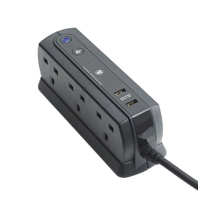 Masterplug Surge Protector Extension Lead (4 Socket & 6 Socket) 2M Compact Power Strip Anti-Spike Protection