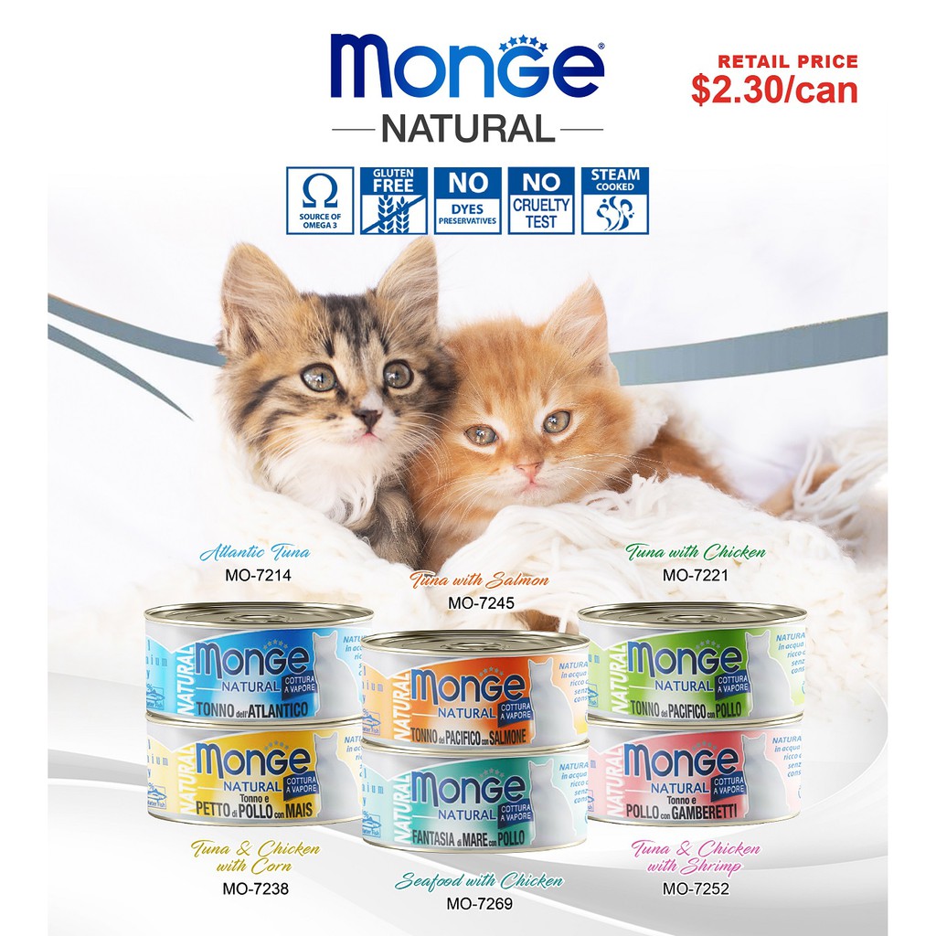 [24 cans] Monge Natural Cat Wet Food Canned 80g x 24cans *Can Mix Flavours* While Stock Last