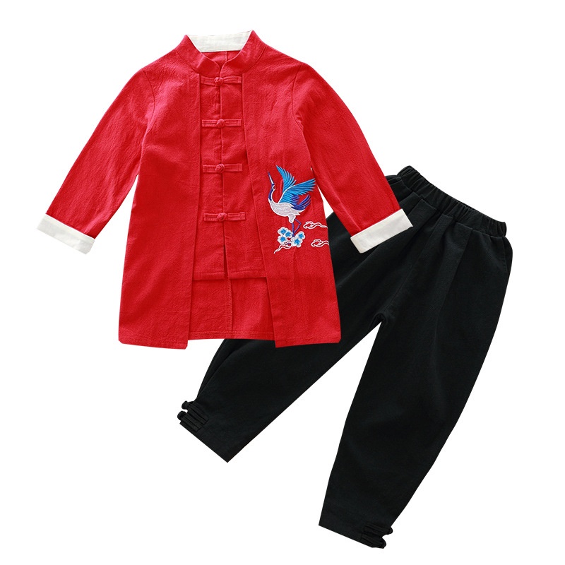 Chinese New Year Boys Cheongsam 2pcs Boys' Hanfu Tang suits Kids Chinese Costume Traditional Chinese Tang Suits Clothes Long Sleeve Children Hanfu Sets Baby Boys CNY Costume