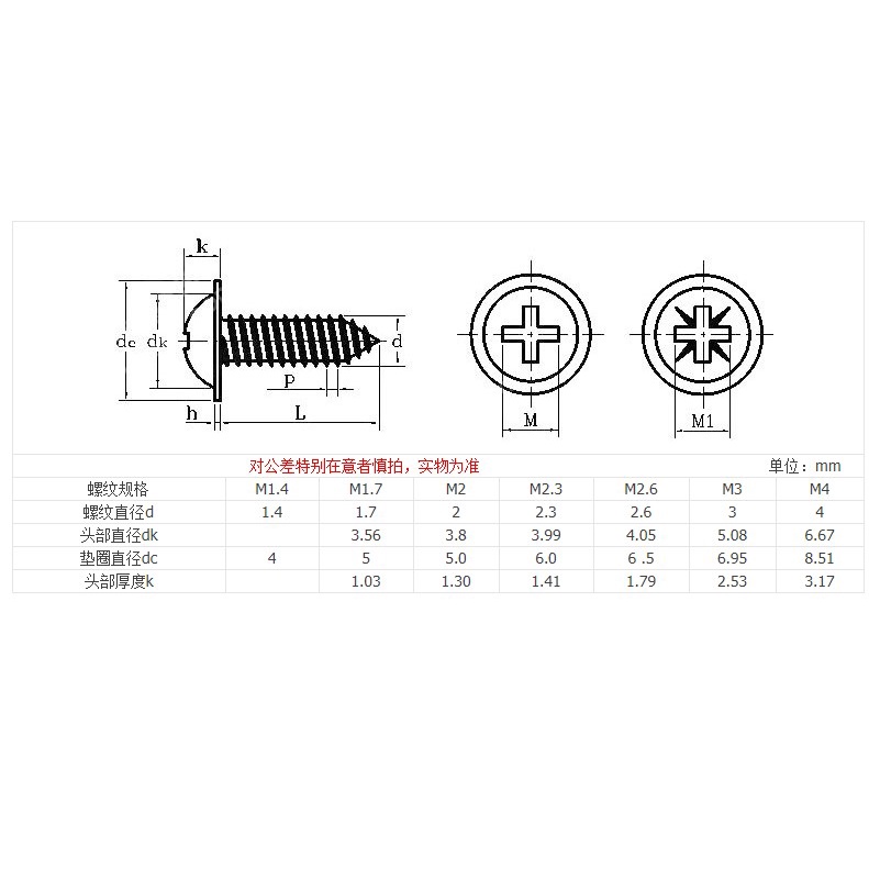3276 > [M1.7 M2 M2.3 M2.6 M3 M4] Stainless Steel 304 Round Head with Pad Self-tapping Screws with Pad Self-tapping Screws