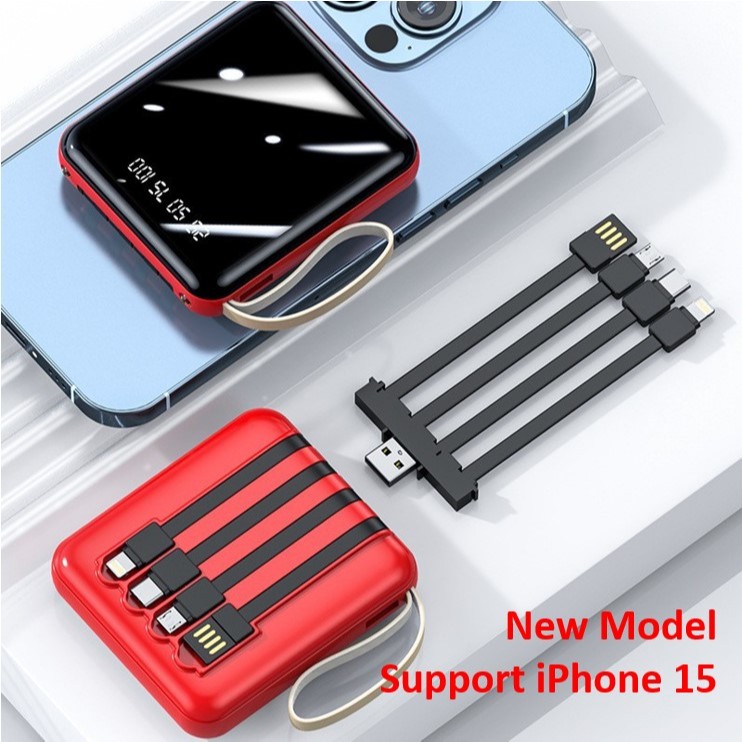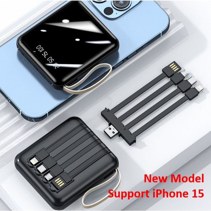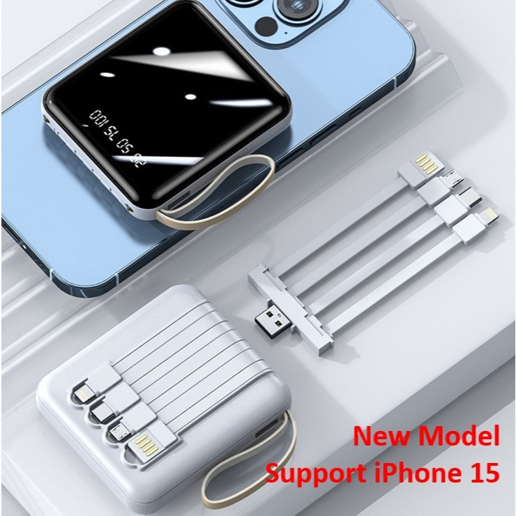 (SG STOCK) Power Bank Fast Charging PowerBank Cable Portable 4in1 20000 mAh For Apple iPhone 17 16 15 Samsung S25 S24