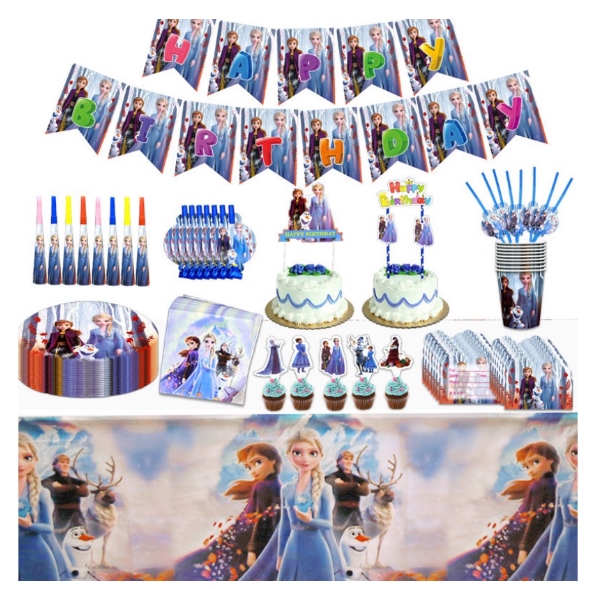 Frozen 2 Birthday Party Supplies and Decoration Pack Set Plates, Napkin, Tablecover, flag, Invitation card