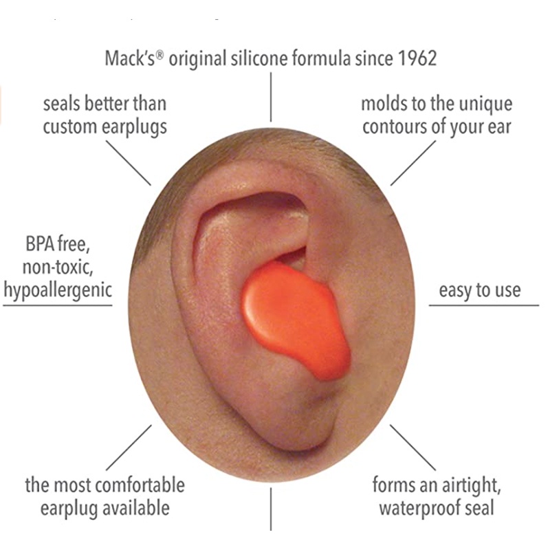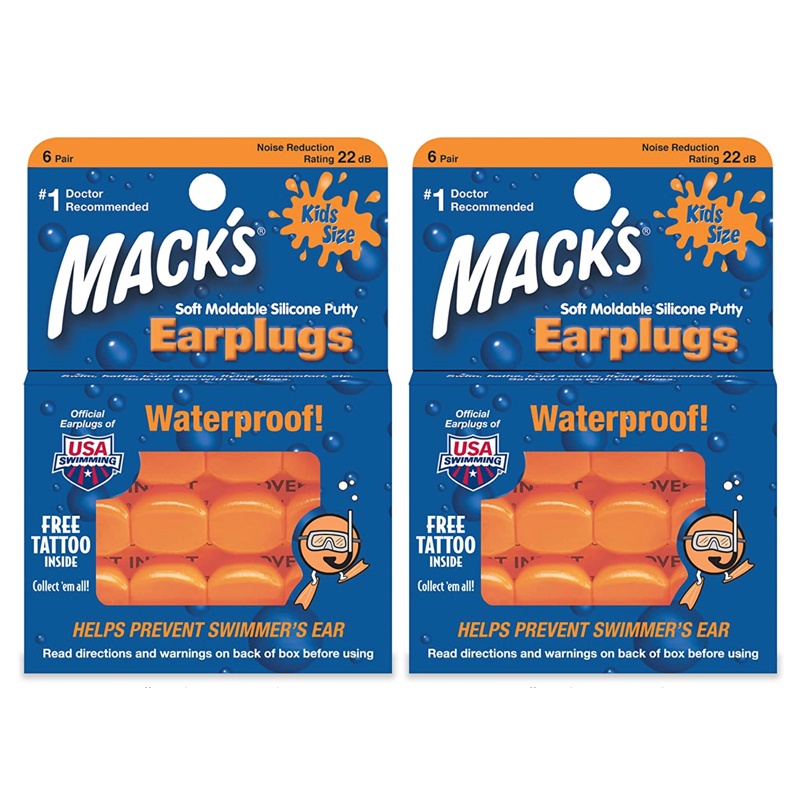 1+1 Macks Moldable Silicone Ear Plugs, Kids Size, 6 pair/pack, swimming sleeping travel