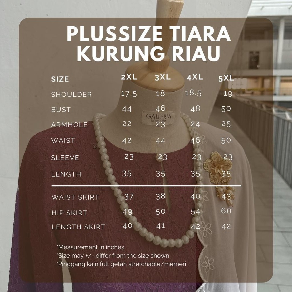 TIARA Cotton Lace Baju Kurung Riau Plus-size Galleria Boutique