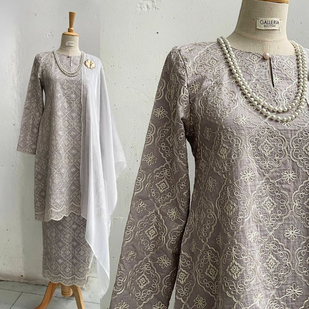 ALIZA Baju Kurung Riau Plussize Cotton Embroidery Tencel Galleria Kesuma