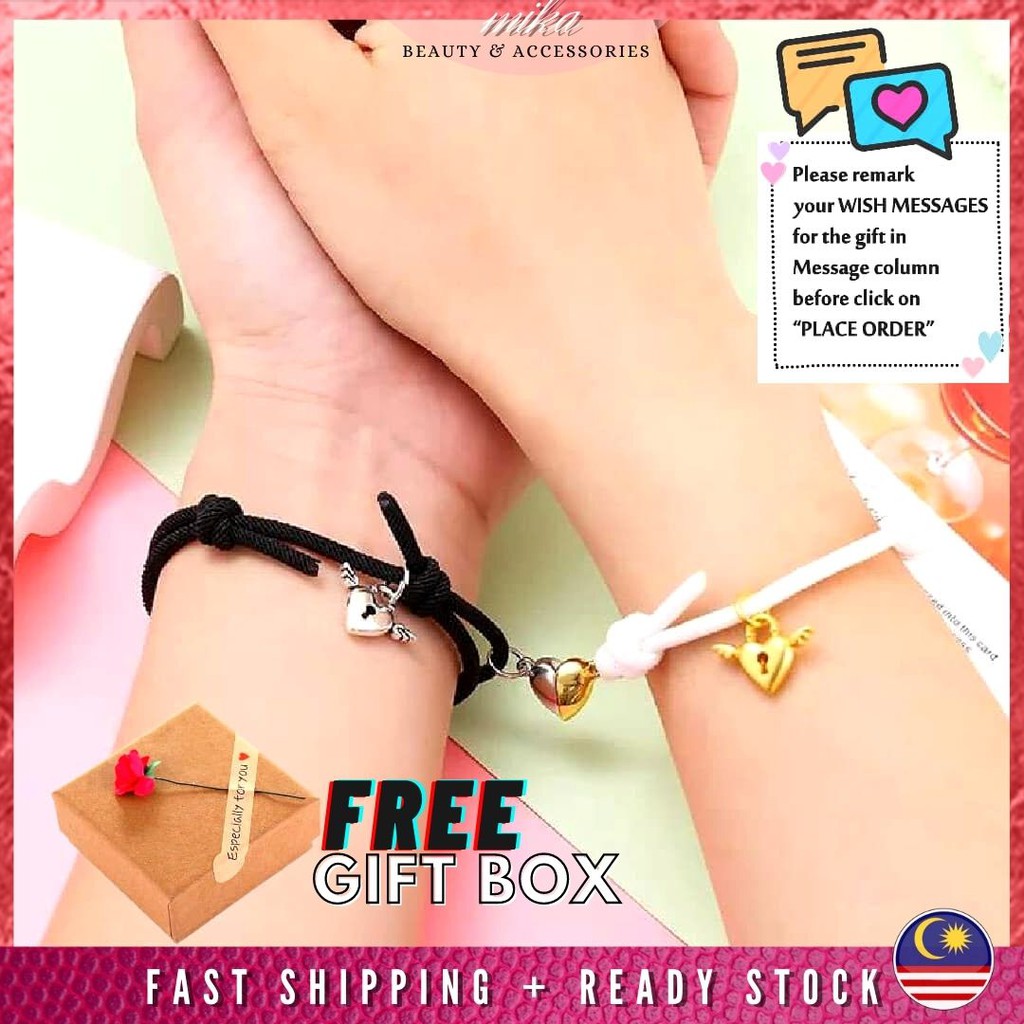 2PCS/Set Couple Bracelet Gelang Tangan Perempuan Gelang Couple Magnet Bracelet Friendship Bracelet For Women Gelang Rope Matching Bracelet