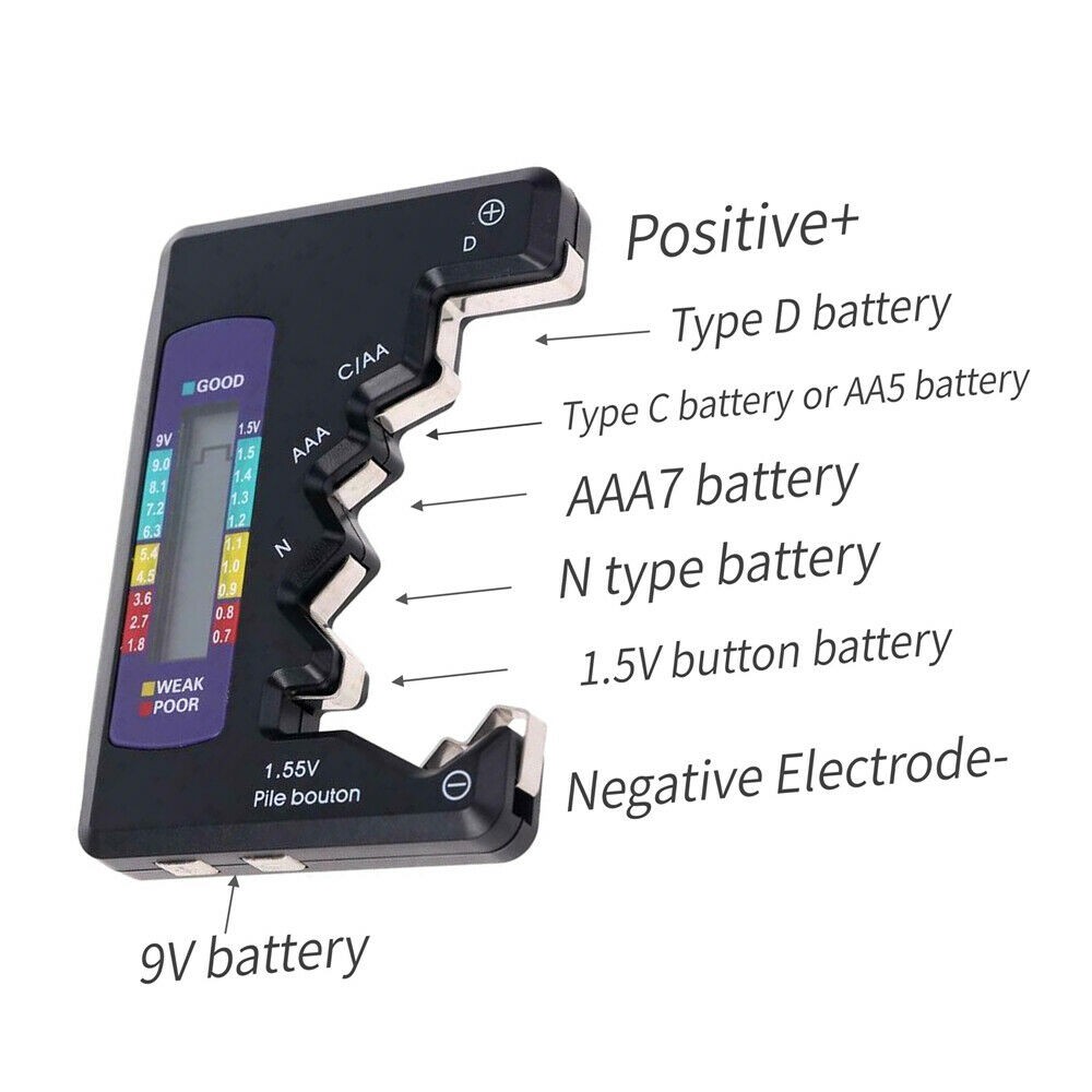 Universal Digital Battery Tester AA AAA C D N 1.55V 9V(6F22)Button Checker Meter Generic
