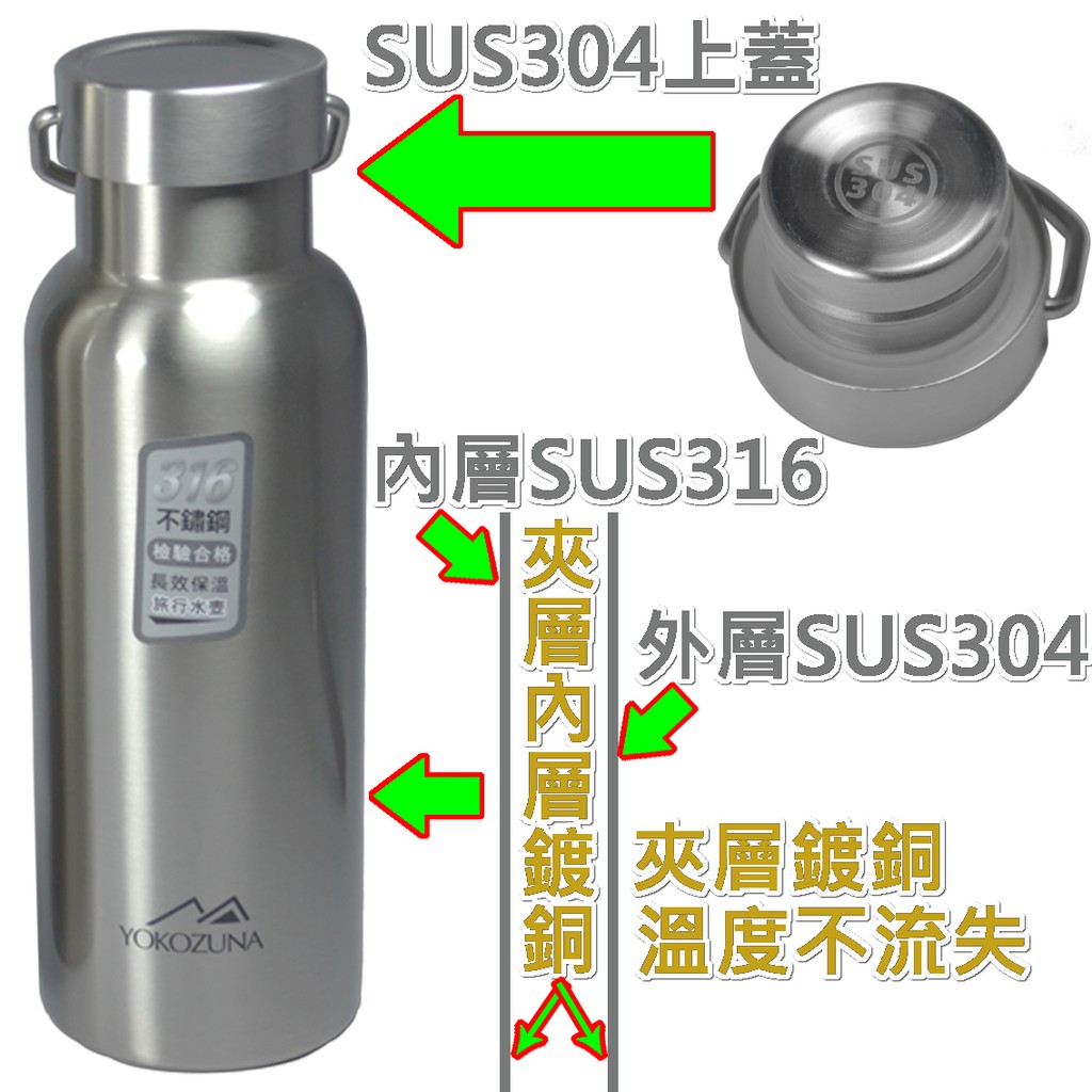 YOKOZUNA 316 Stainless Steel Extreme Vacuum Sports Cup 500ml 750ml 1100ml Thermos Flask