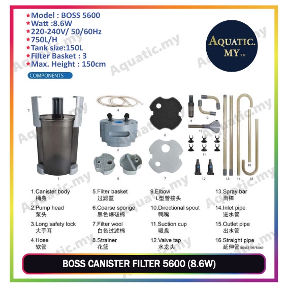 BOSS 5600 Canister Filter (8.6W, 750L/H)