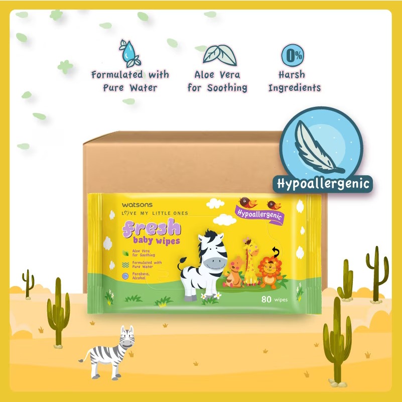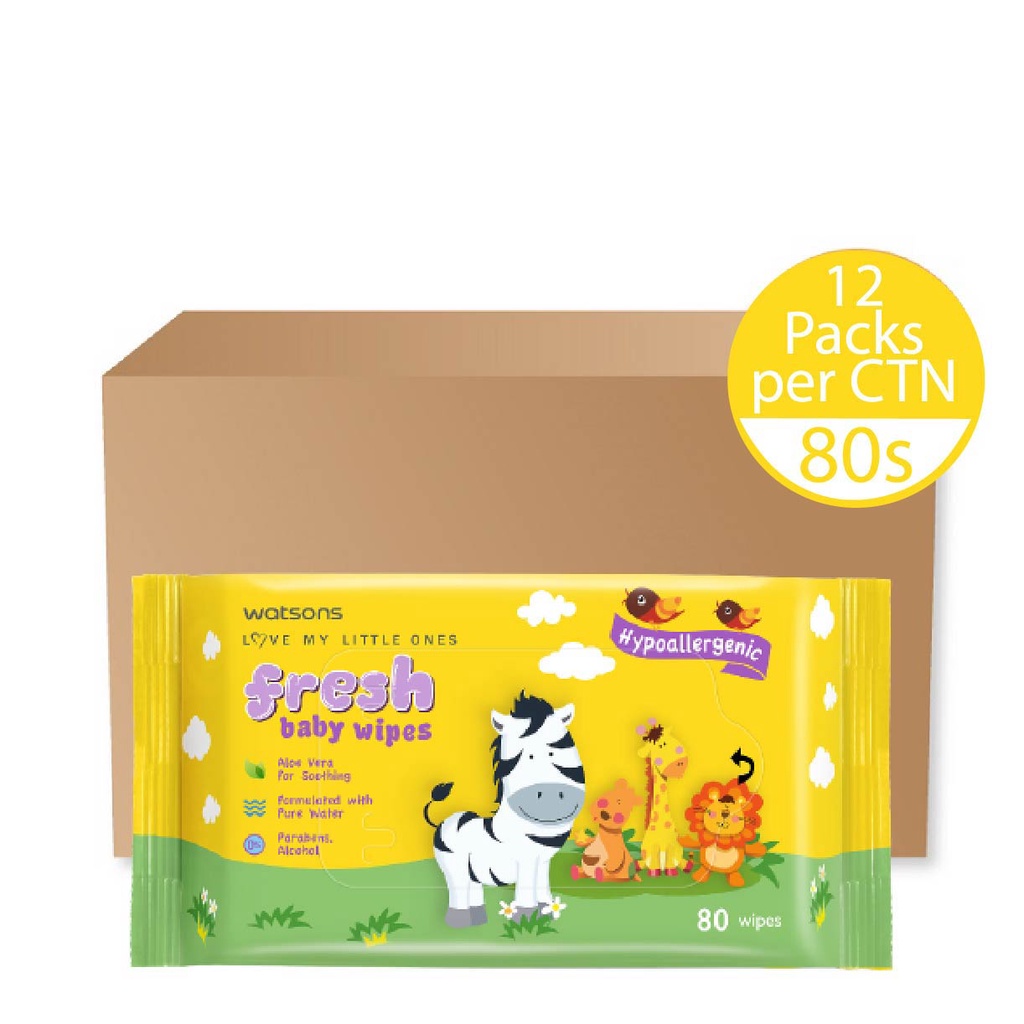 WATSONS Fresh Baby Wipes Hypoallergenic 80s X 12 Packs (per carton)