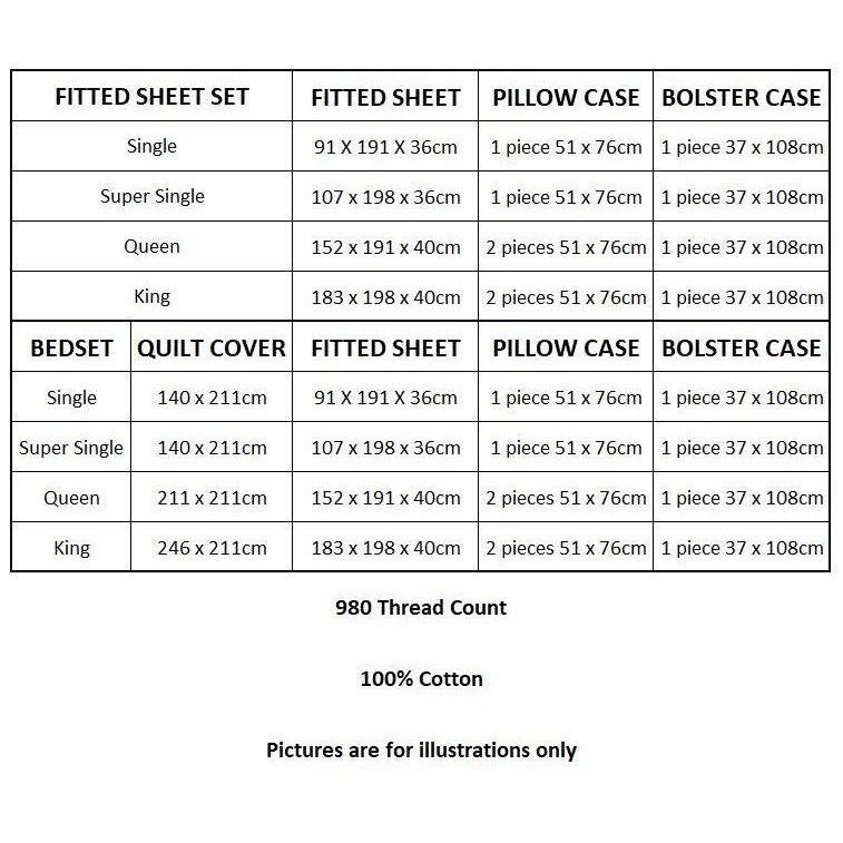 Eurotex Contemporary, 980 Thread Count 100% Cotton, Fitted Sheet Set / Bedset - Faith