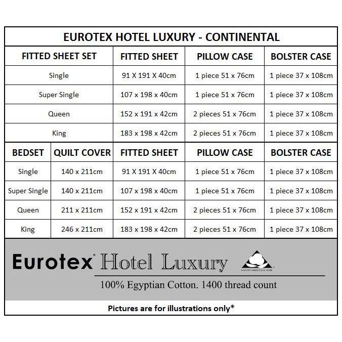 Eurotex Hotel Luxury, 1400 Thread Count, 100% Egyptian Cotton™, Fitted Sheet Set / Quilt Cover Set, Continental