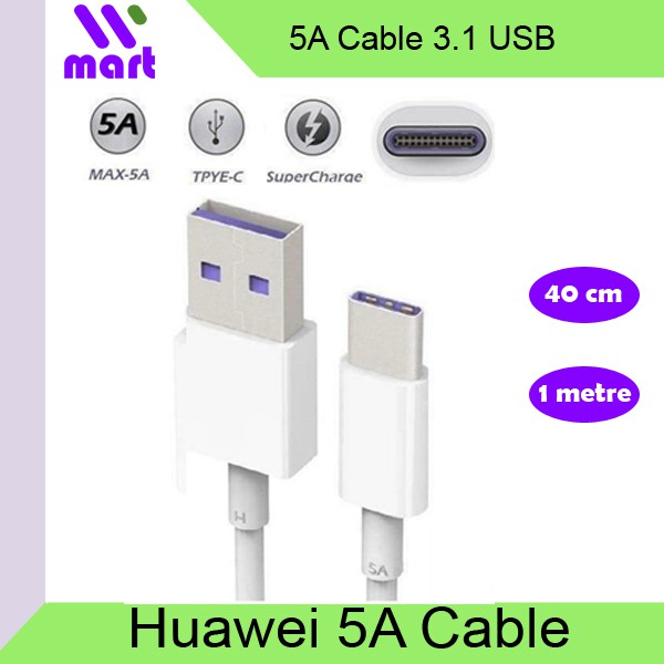 Huawei Cable USB C 5A SuperCharge Fast Charger Type C 3.1 Data Cable (40cm / 1 metre)