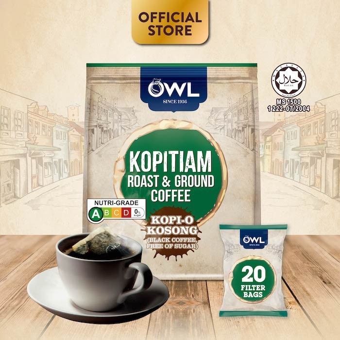 OWL Kopitiam Roast & Ground Coffee Kopi-O-Kosong, 20 sachets (Expiry: June 2027)