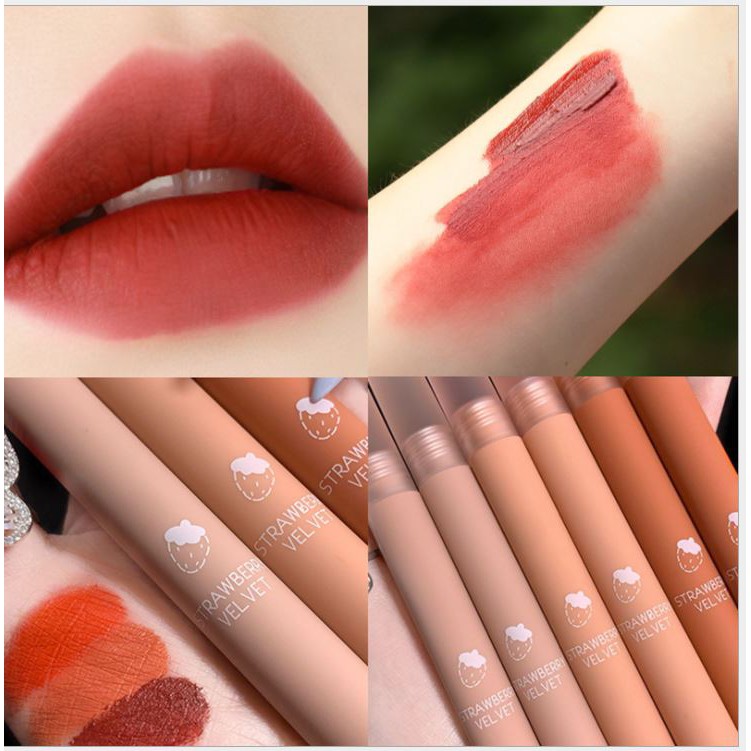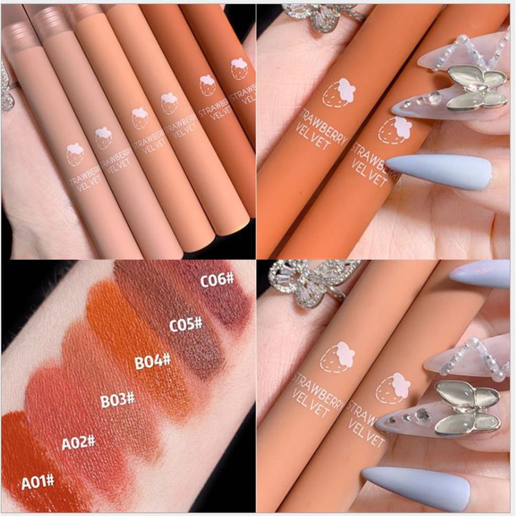 Authorized kakashow Morandi Strawberry Series Matte Velvet Lipstick Air Cushion Lip Glaze Eating Earth Color Gloss Lip Tint Lip Stain