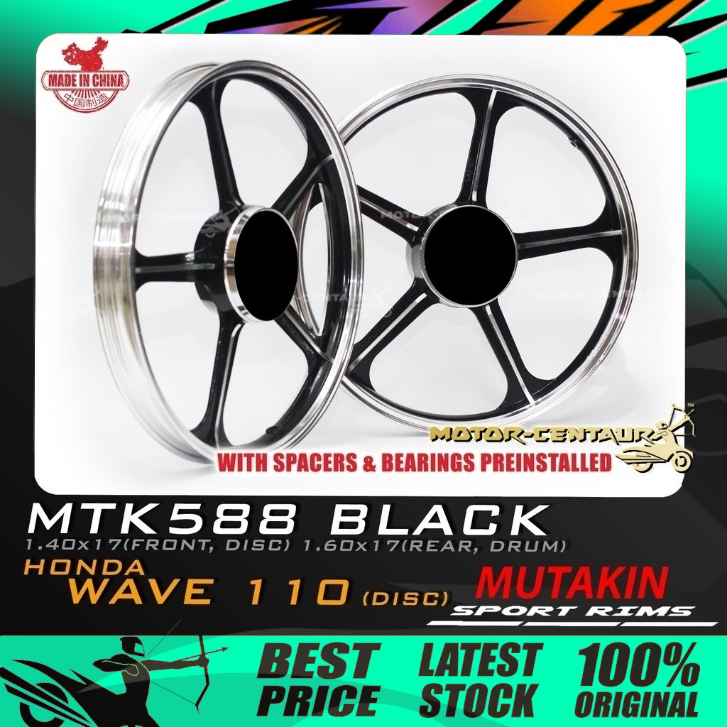 RIM MUTAKIN SPORT RIMS W/BEARINGS 5L (MTK588) 1.40X17(DISC, F) 1.60X17(DRUM, R) FOR HONDA WAVE110, DASH V1, V2 BLACK
