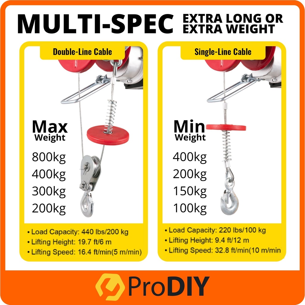 HOIST CRANE / ELECTRIC LIFT / LIFTING 800kg 200kg Capacity MINI Wire Rope Hoist ( PA200 / PA300 / PA400 / PA800 ) 起重机