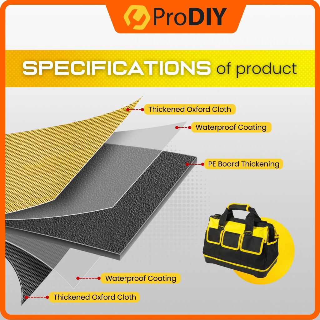 PRODIY 14" 16" 18" 20" Tool Bag Heavy Duty Waterproof Bag Electrician Tool Beg Solid Base Hand Bag 工具包 ( RANDOM COLOUR ) Tool Box Tool Storage Box