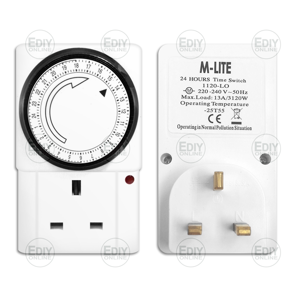 Timer switch socket 24 Hours 1120 - Long Analog Programme Programmable 3 Pin Plug SIMILAR EUROSAFE Suis Pemasa 定时开关