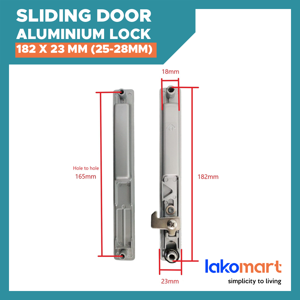 Aluminium Sliding Door Lockset with Key Lock/ No Key (182 X 23mm)