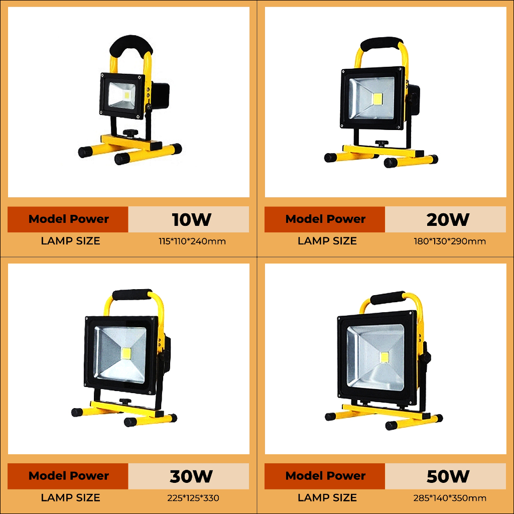 [SG SELLER] 10W/20W/30W/50W/100W/150W Bright Light Led Rechargeable Flood Spotlight Emergency Waterproof Security Lights