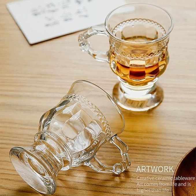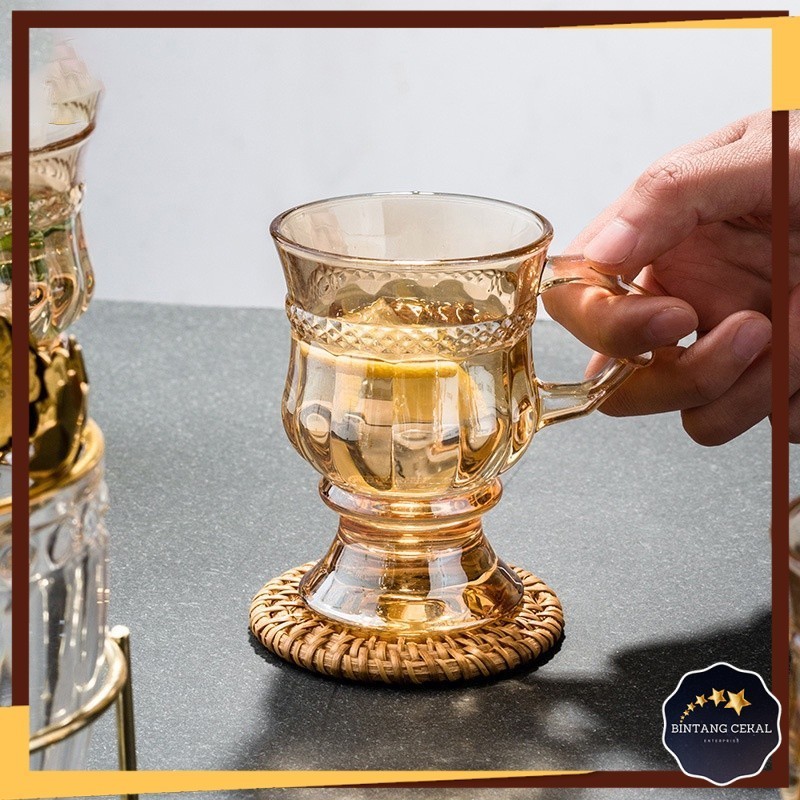 BC Amber Glass Cup Cawan Kaca Retro Juice Mug Coffee Mini Wine Pencuci Mulut Kopi Nordic Style Jus Dessert French 玻璃杯