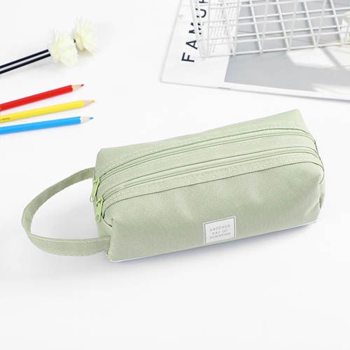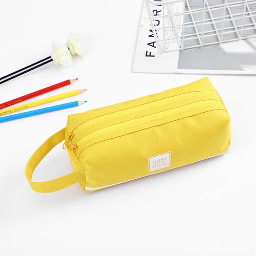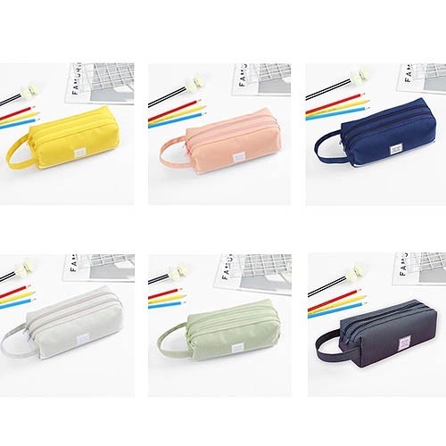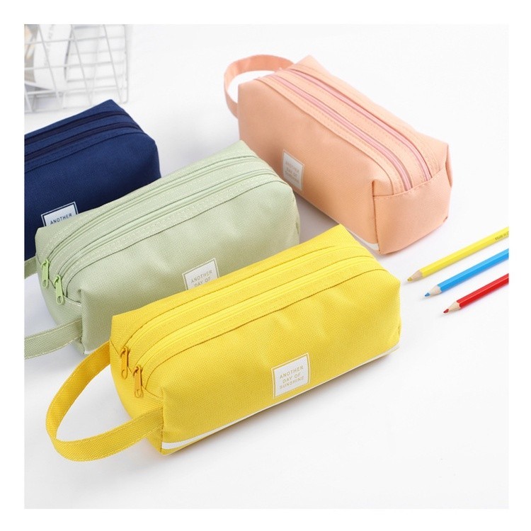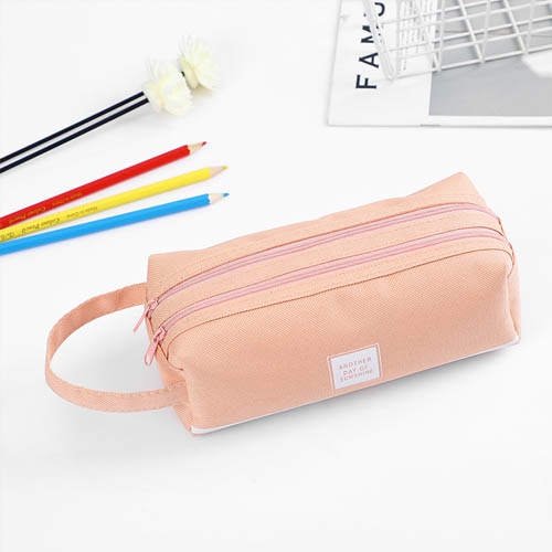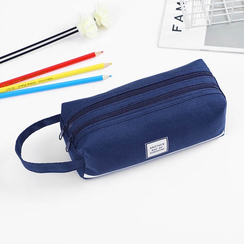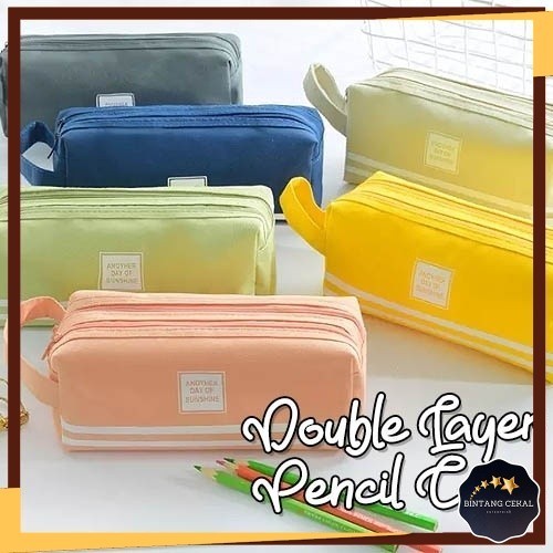 BC Pencil Case Large Canvas Double Layer Solid Colour Pouch Pen Case Stationery Student School Kotak Pensil Kain铅笔盒