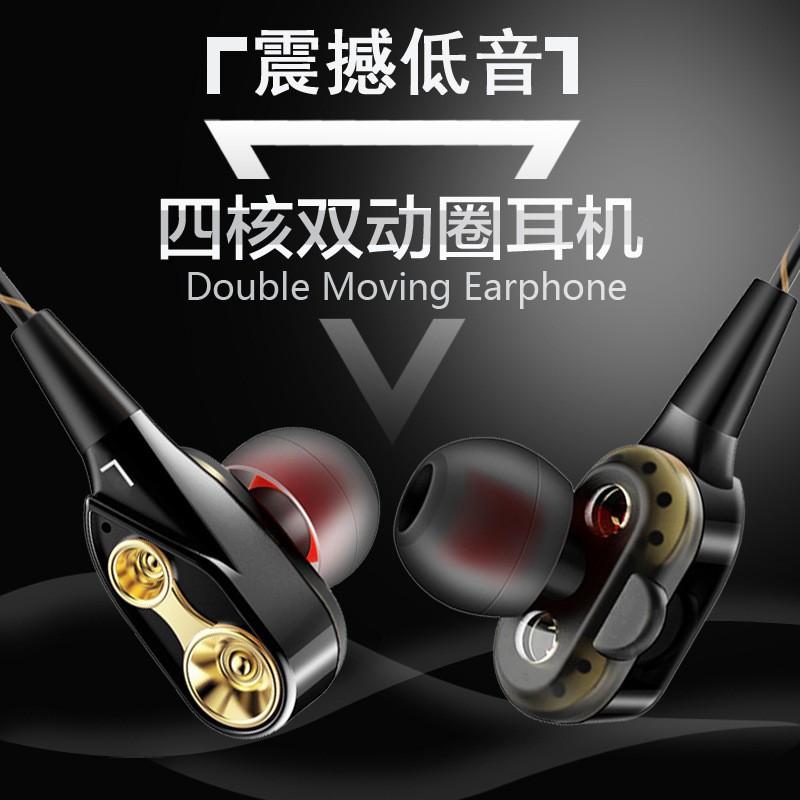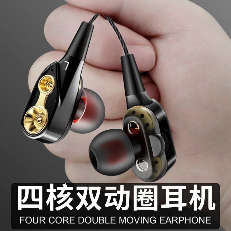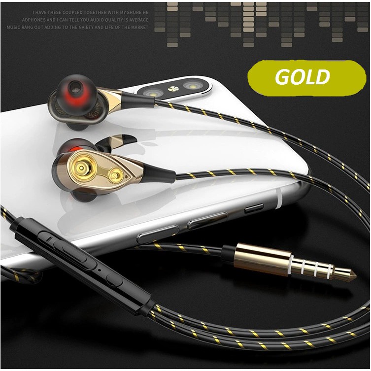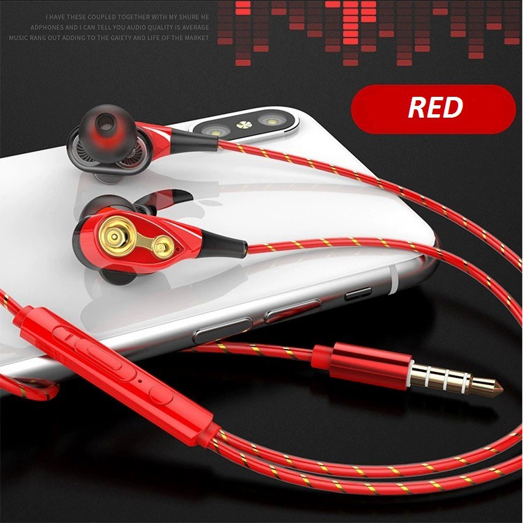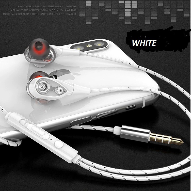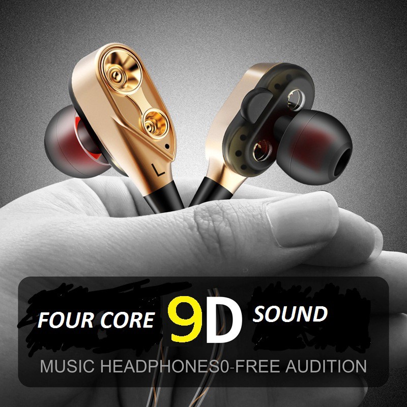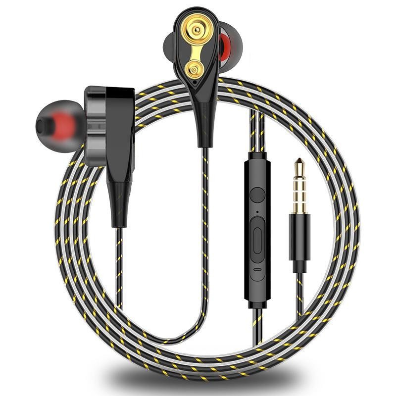 New 2020 9D Bass Double Speaker 3.5MM Earphones Dual Drive Stereo Earbuds with Mic and Wire Control Wired Headphone