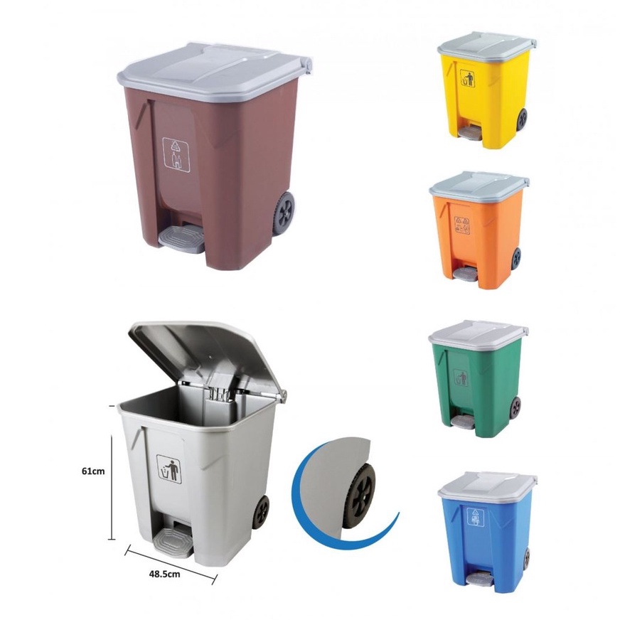 RAYACO 68L Mobile Plastic Dustbin With Wheel/Tong Sampah/Trash Bin/Dustpin pijak/Dustbin With Pedal Large Size /Step Bin