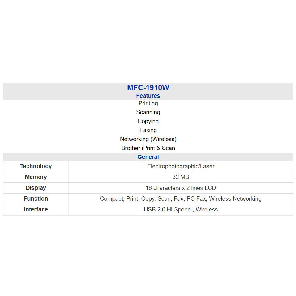 [READY STOCK] Brother Monochrome Multi-Function Laser Printer MFC-1910W 3 years carry-in warranty included