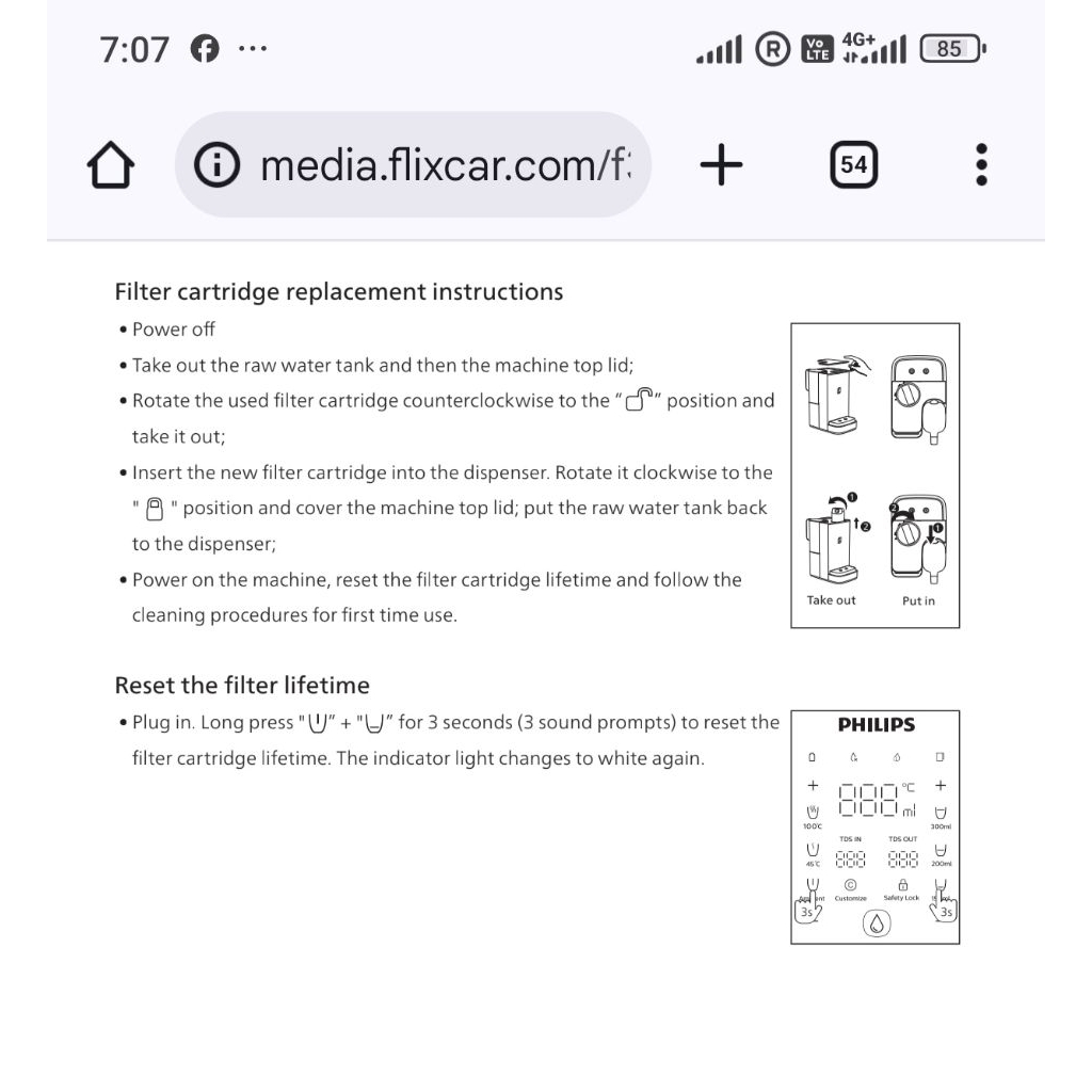Philips ADD583 ADD583/90 Water Filter Replacement Cartridge Filter for ADD6920