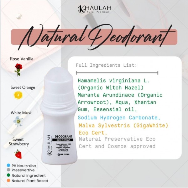 DEODORANT KHAULAH UBAT KETIAK PEWANGI KETIAK KHAULAH DEODORANT WHITE MUSK ROSE VANILLA DEODORANT