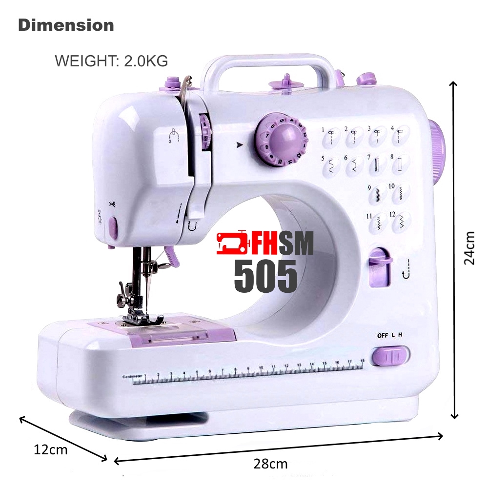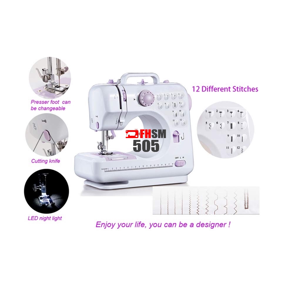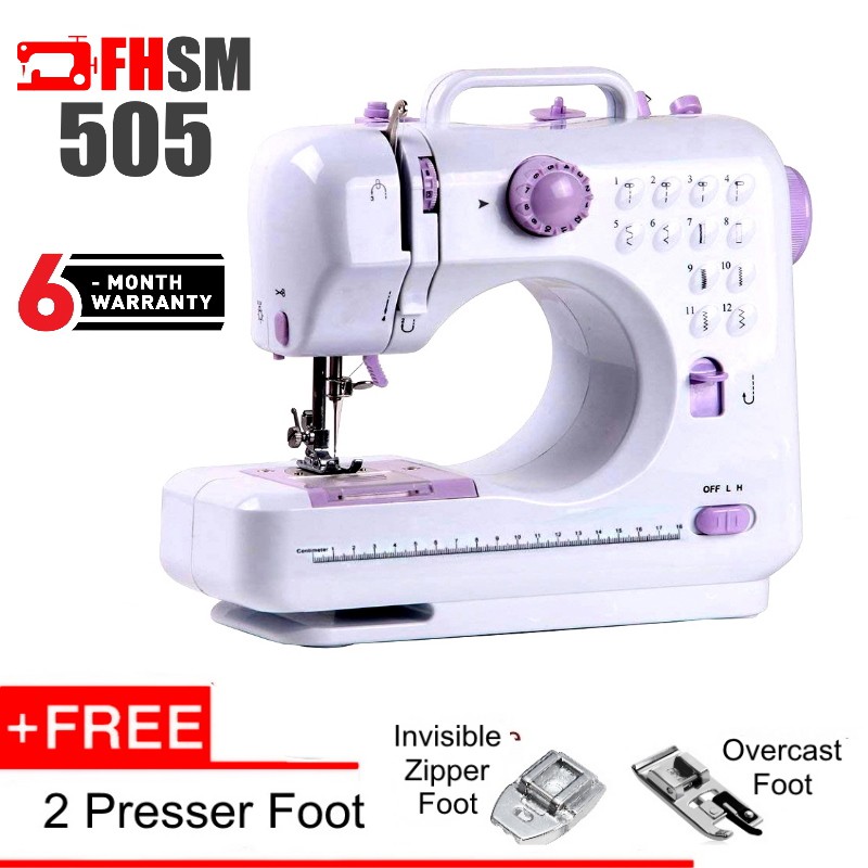 FHSM 505A Pro Upgraded 12 Stitches Sewing Machine Mesin Jahit Singer Juki Free Overcast & Invisible Zipper Foot