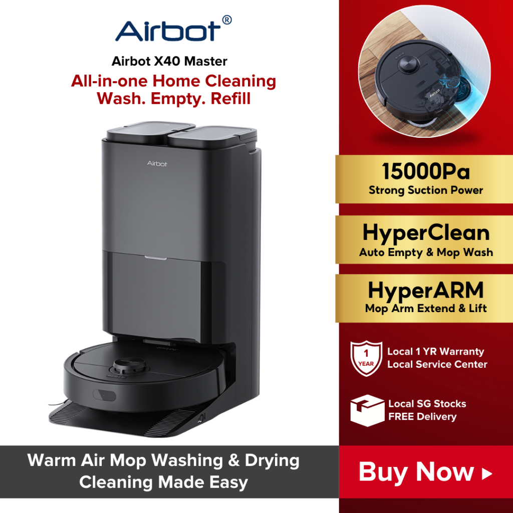 Airbot Robot Vacuum X40 Master | 15000Pa Smart Robot Vacuum Mop Hot Air Drying Mop Extension Auto Dock Station
